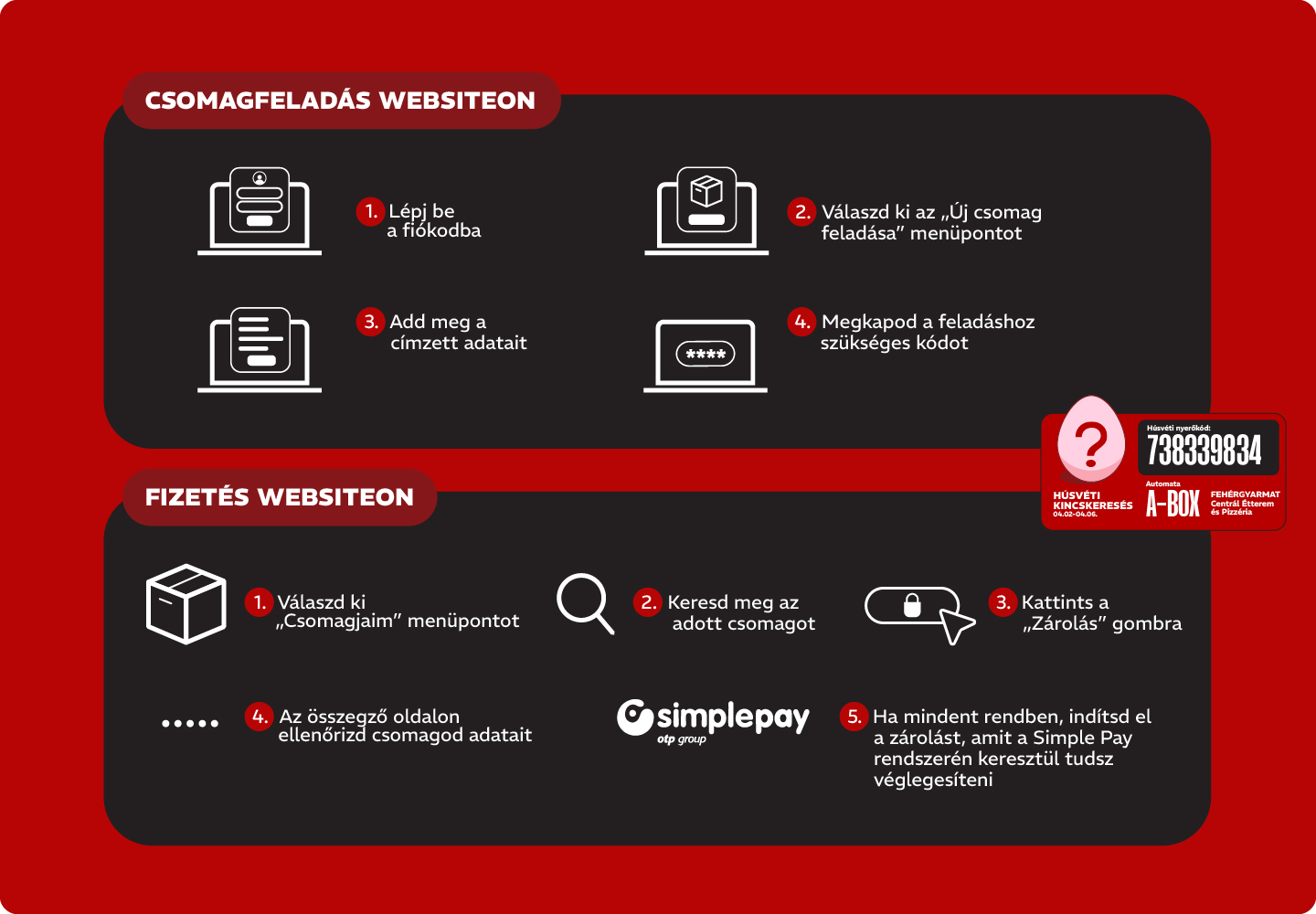 Figyelem: a zárolás során automatikusan az XL-es méretű csomag díja kerül levonásra. Amennyiben a végleges csomagméret kisebb, a különbözetet a rendszer automatikusan visszatéríti a feladás után, a ténylegesen használt rekesz alapján.
