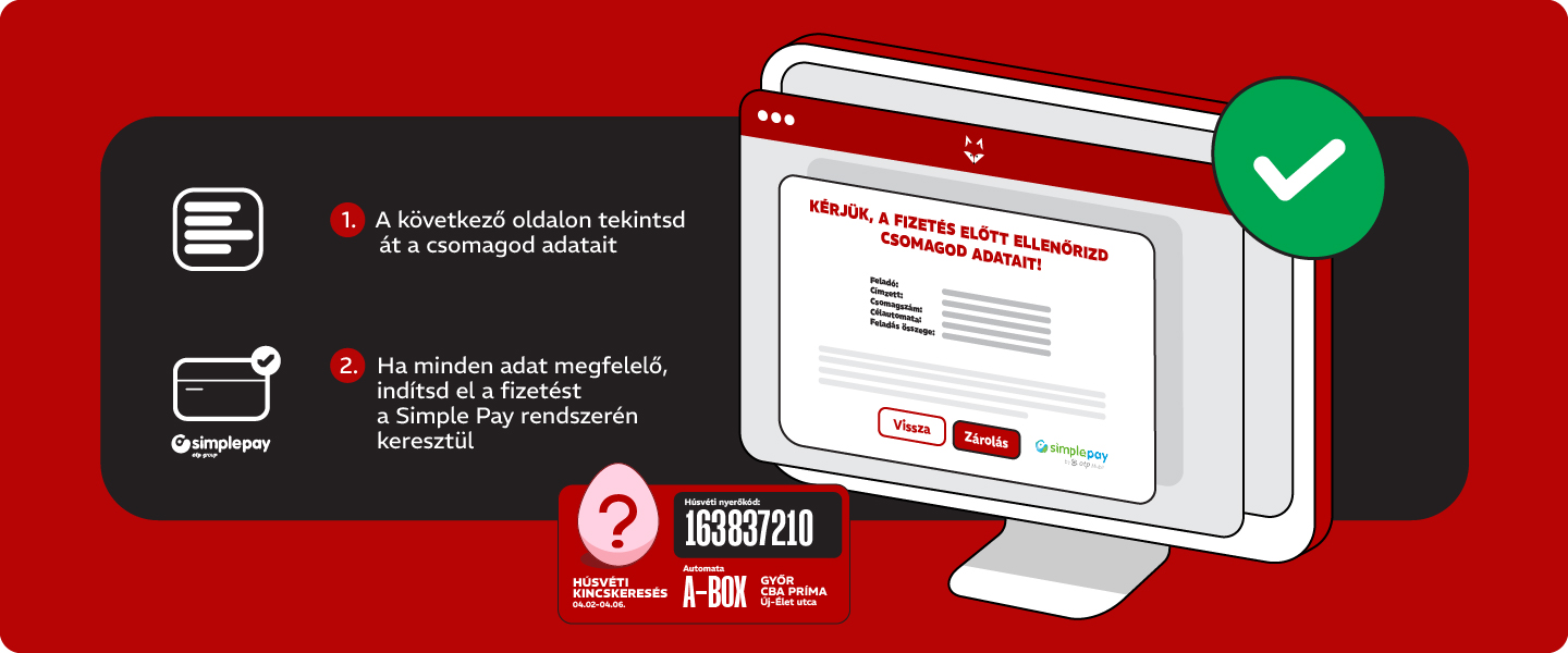 A következő oldalon tekintsd át a csomagod adatait. Ha minden adat megfelelő, indítsd el a fizetést, amelyet a Simple Pay rendszerén keresztül tudsz lebonyolítani.