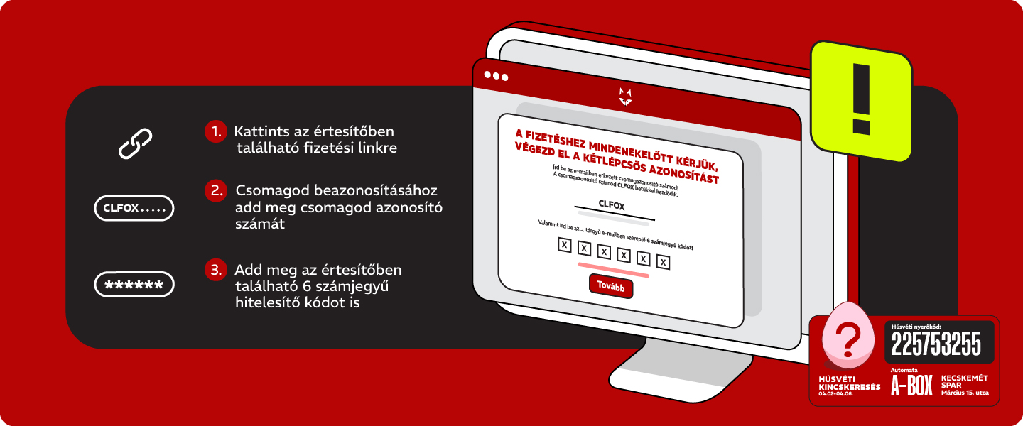 Kattints az értesítőben található fizetési linkre, majd csomagod beazonosításához add meg csomagod azonosító számát és az értesítőben található 6 számjegyű hitelesítő kódot.